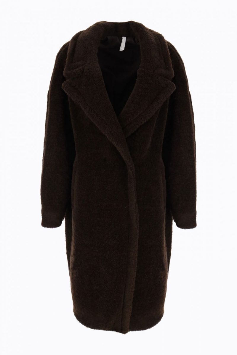 Teddy zimný kabát IMPERIAL z vlnenej zmesi tmavo hnedý