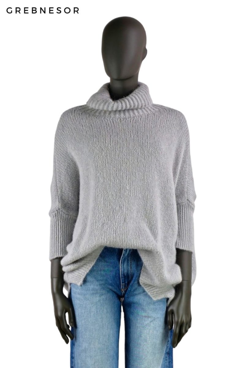 Sveter voľnejšieho strihu s rolákom IMPERIAL sivý