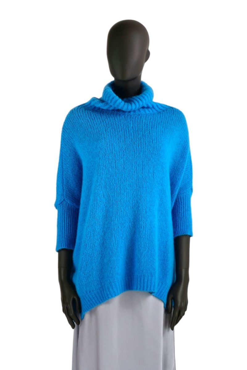 Sveter voľnejšieho strihu s rolákom IMPERIAL modrý