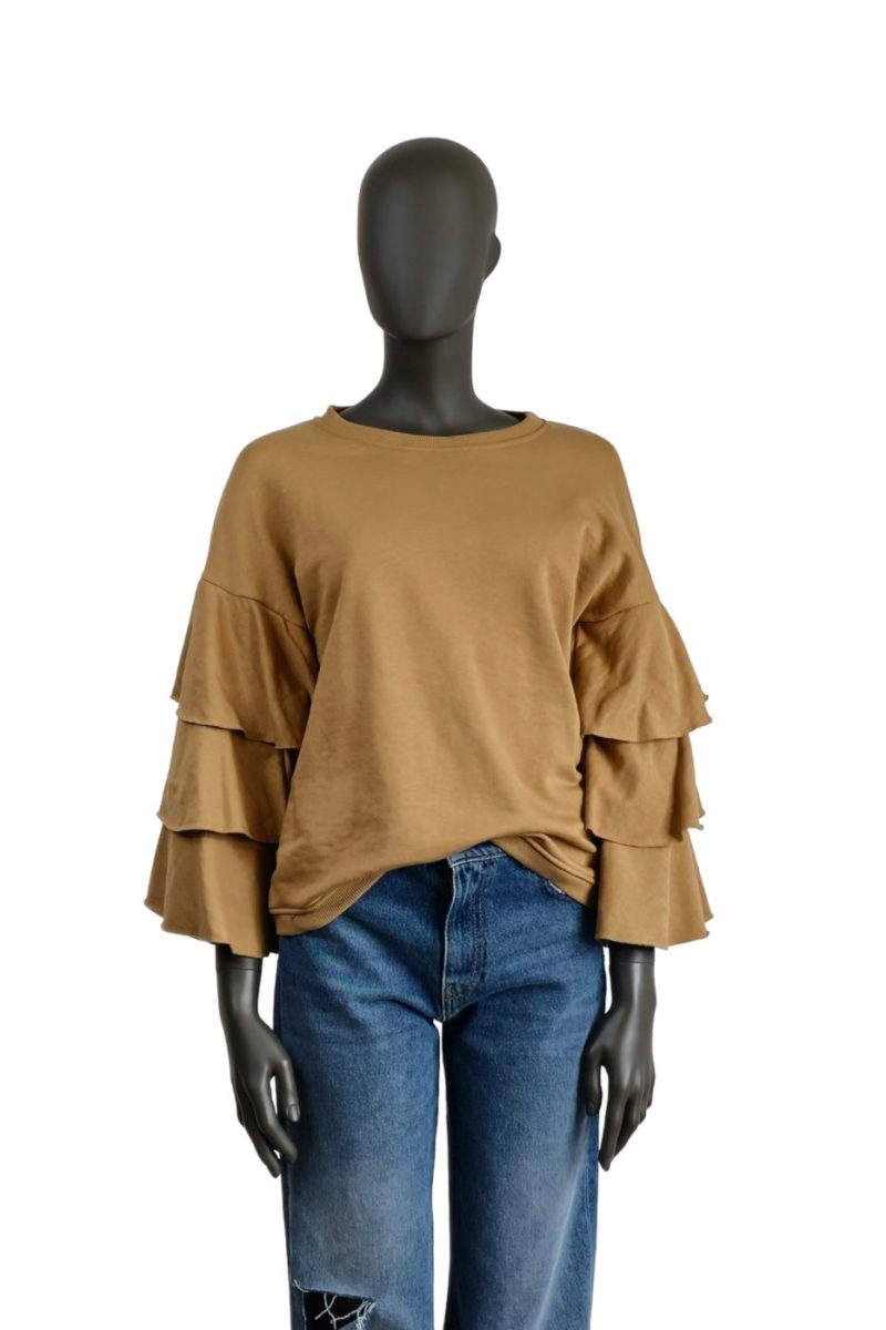 Dámska mikina s volánovými rukávmi VICOLO camel