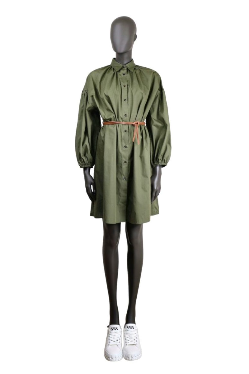 Košeľové šaty VICOLO s balónovými rukávmi khaki zelené