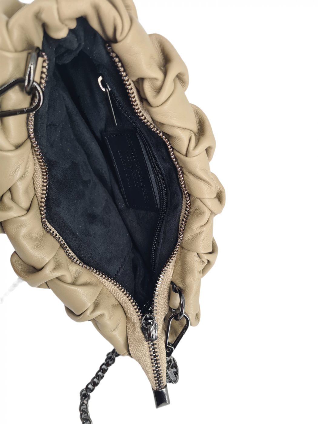 Dámska kabelka do ruky je nevyhnutným spoločníkom každej ženy. Vďaka dlhšej retiazke môžete kabelku nosiť cez rameno alebo z nej urobiť crossbody kabelku. Béžová malá kabelka značky Leather Country s ktorou určite zažiarite.