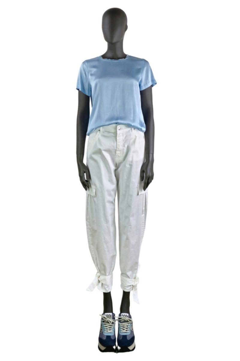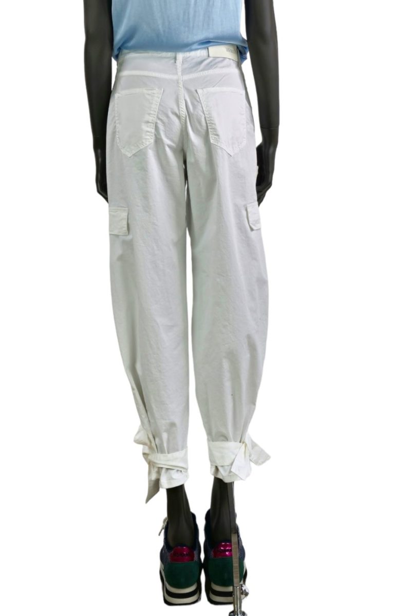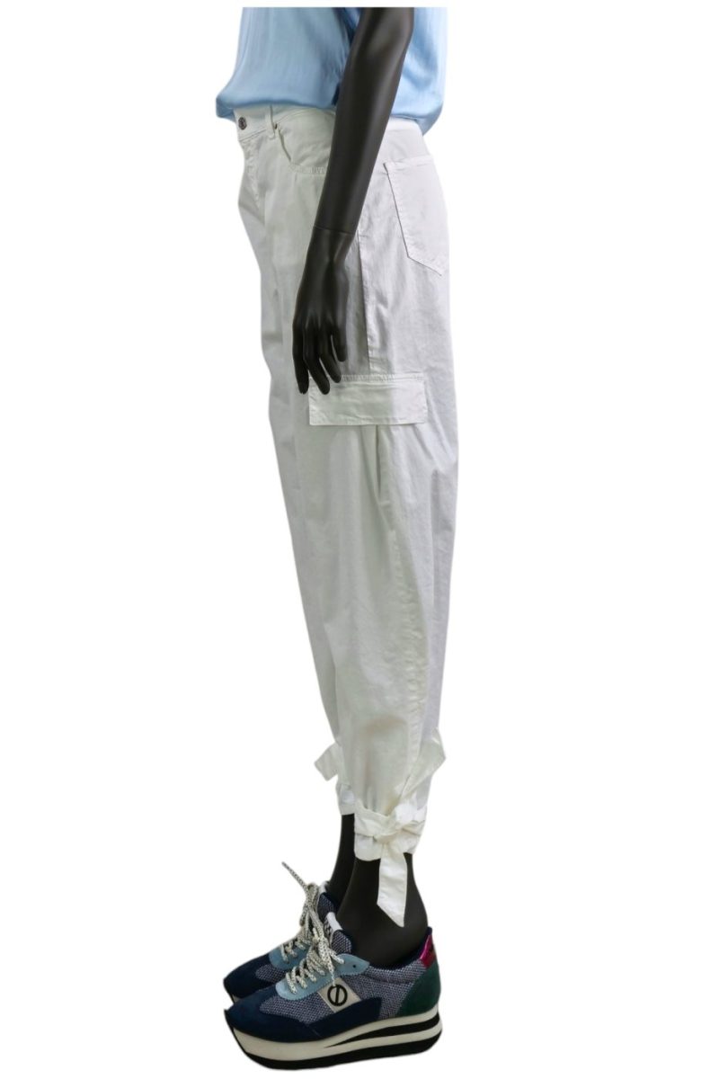 Cargo nohavice so zaväzovaním na členky. Falošné bočné vrecká s chlopňou. S bočnými vreckami a zadnými lemovanými vreckami. Zapínanie vpredu na zips a gombík.