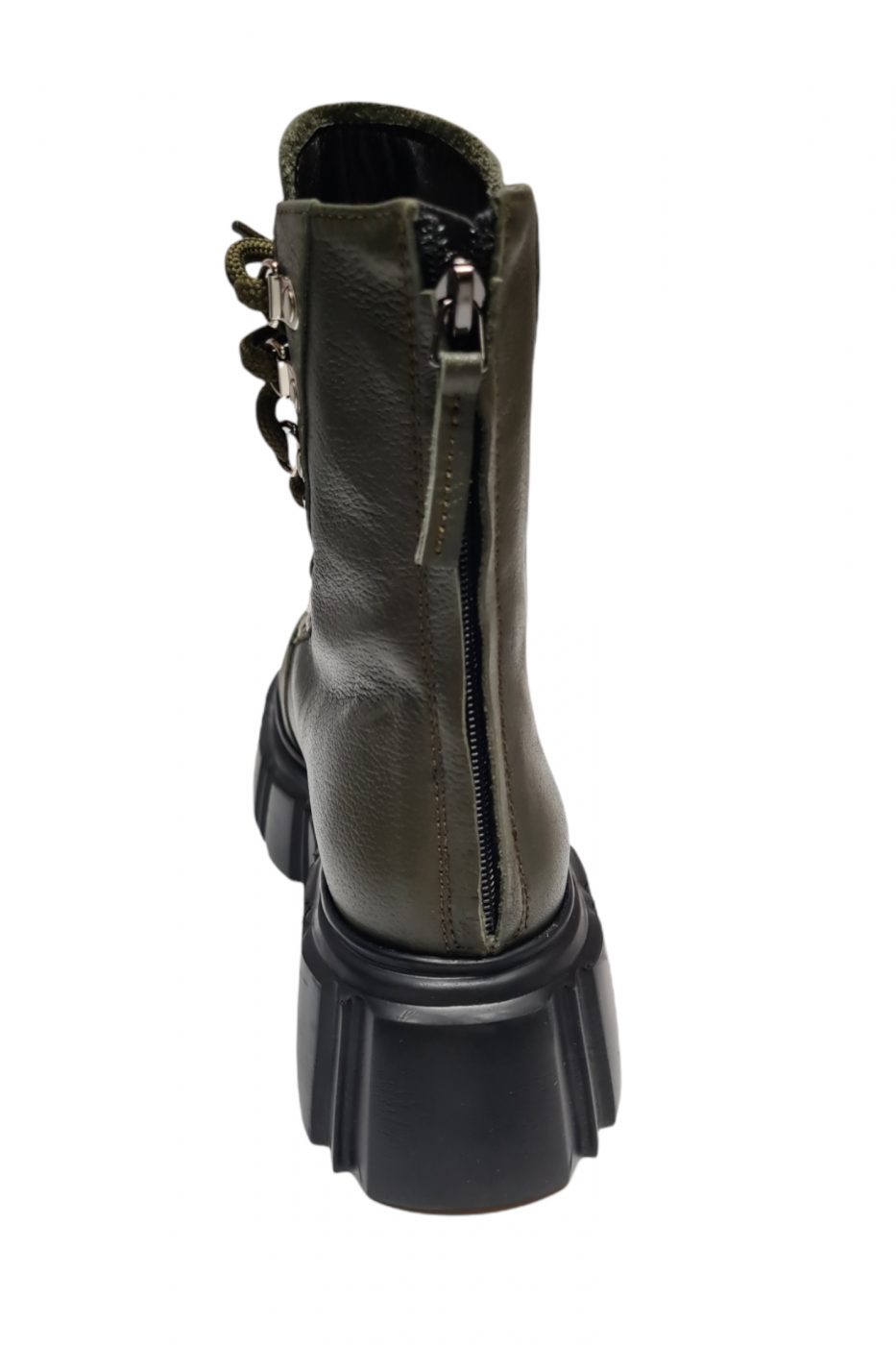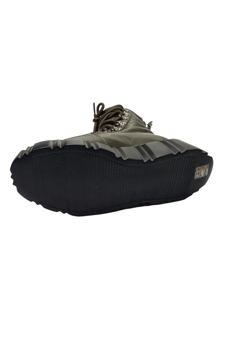 Tieto topánky, ktoré sa zvyknú nazývať bagandže, sú hitom tejto sezóny. Vyčleňte sa z davu a zvoľte si k svojmu outfitu tieto dámske jesenné kožené topánky khaki zelenej farby značky OVYE. Vpredu majú výraznú šnurovačku a vzadu je po celej dĺžke topánky zips, takže obúvanie a vyzúvanie ide s ľahkosťou. Sú ideálne do chladnejších jesenných alebo jarných dní. Odporúčame zladiť k našim nohaviciam, šatám, či sukniam.