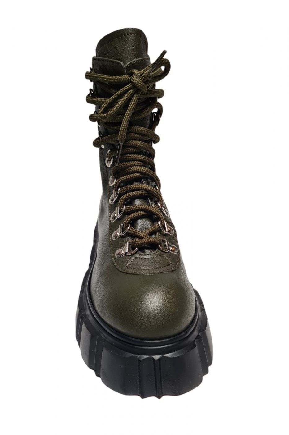 Dámske kožené topánky so šnúrkami OVYE khaki zelené