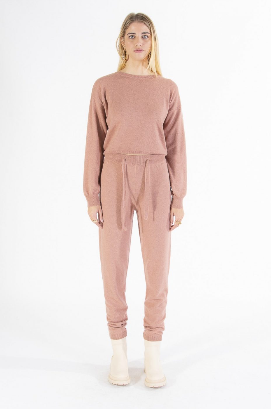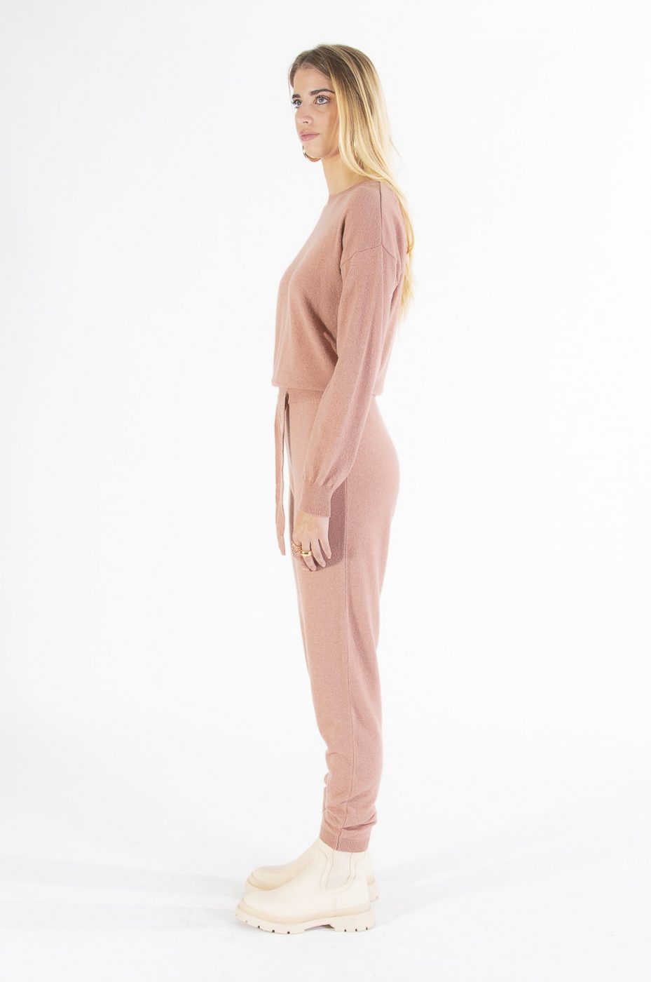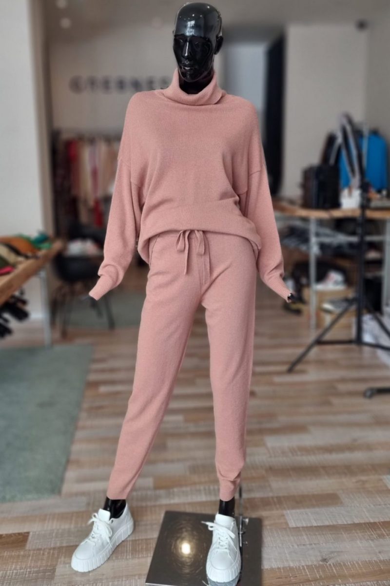 / Dámske pletené nohavice s vysokým pásom KONTATTO staroružové