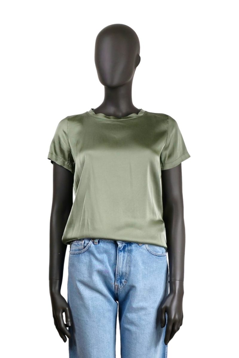Dámske saténové tričko VICOLO khaki zelené