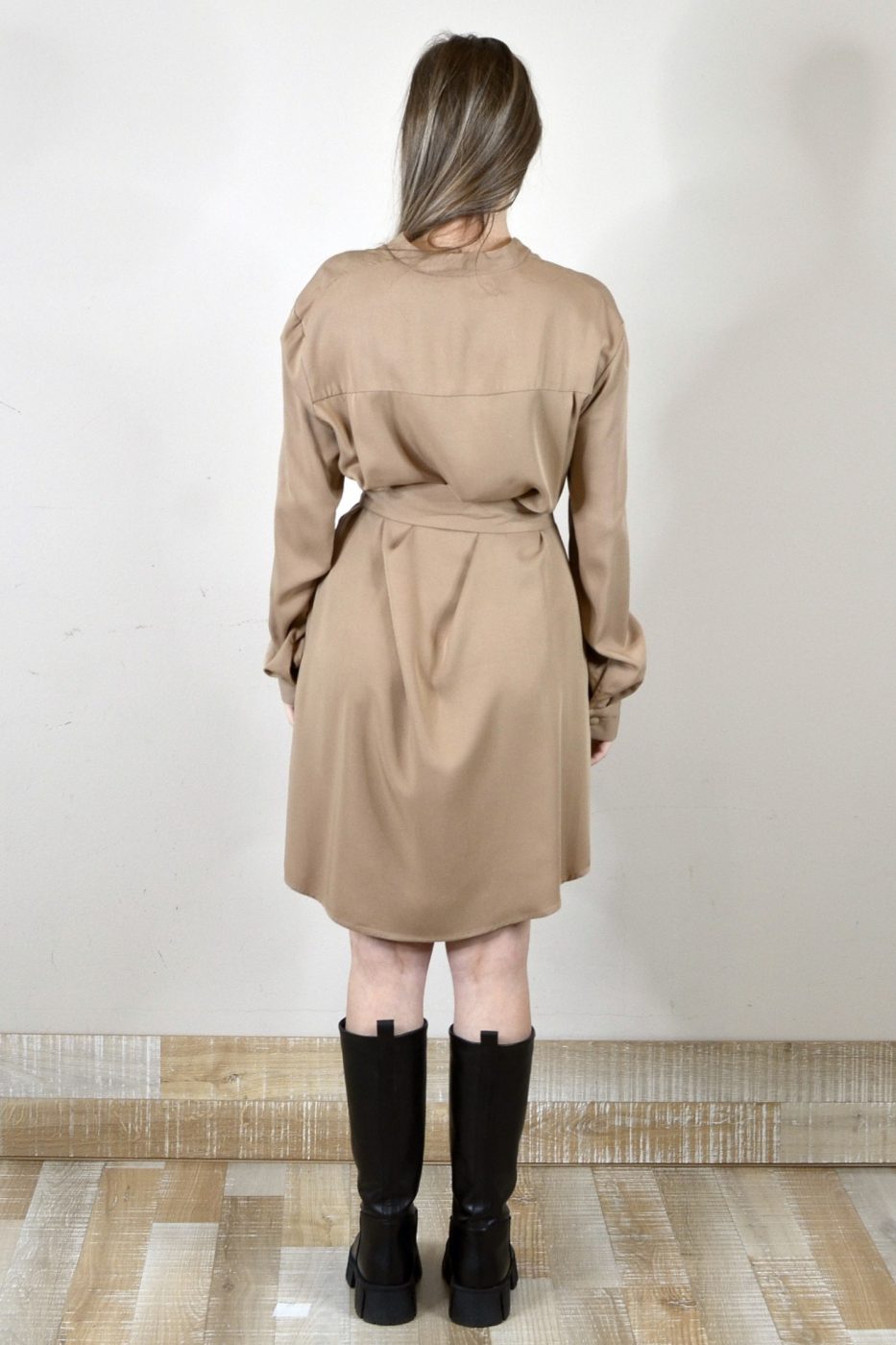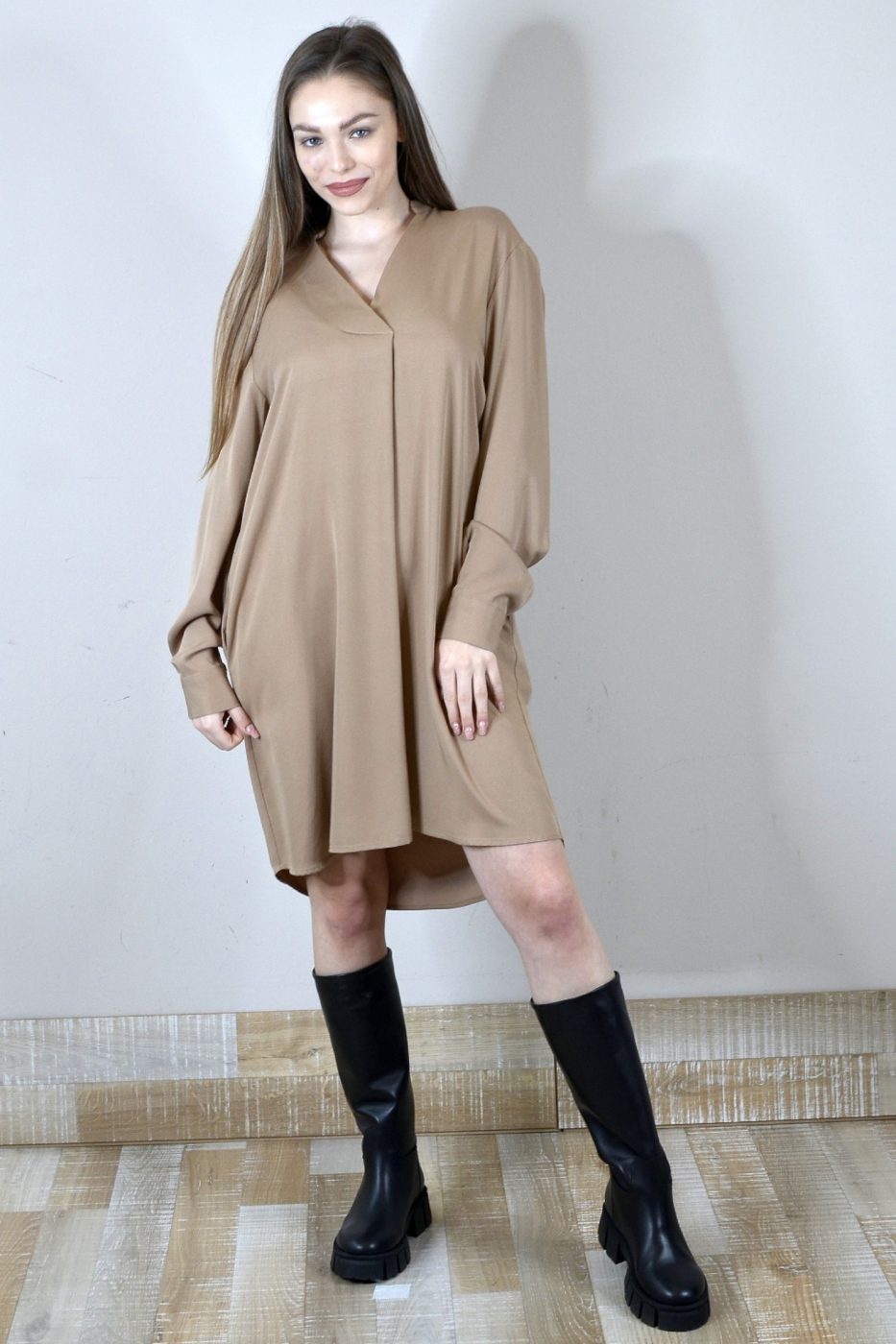 Ak chcete obohatiť svoj šatník o moderné béžové šaty, tieto sú pre vás možno ideálne. Dámske šaty s dlhým rukávom, ktoré môžete nosiť s opaskom aj bez opasku. Šaty na bežné nosenie s výstrihom, ktoré sú skvelým outfitom nielen na večeru, do reštaurácie, na pracovné stretnutie ale aj na prechádzku do mesta. Odporúčame zladiť s našimi koženými topánkami a koženými kabelkami.