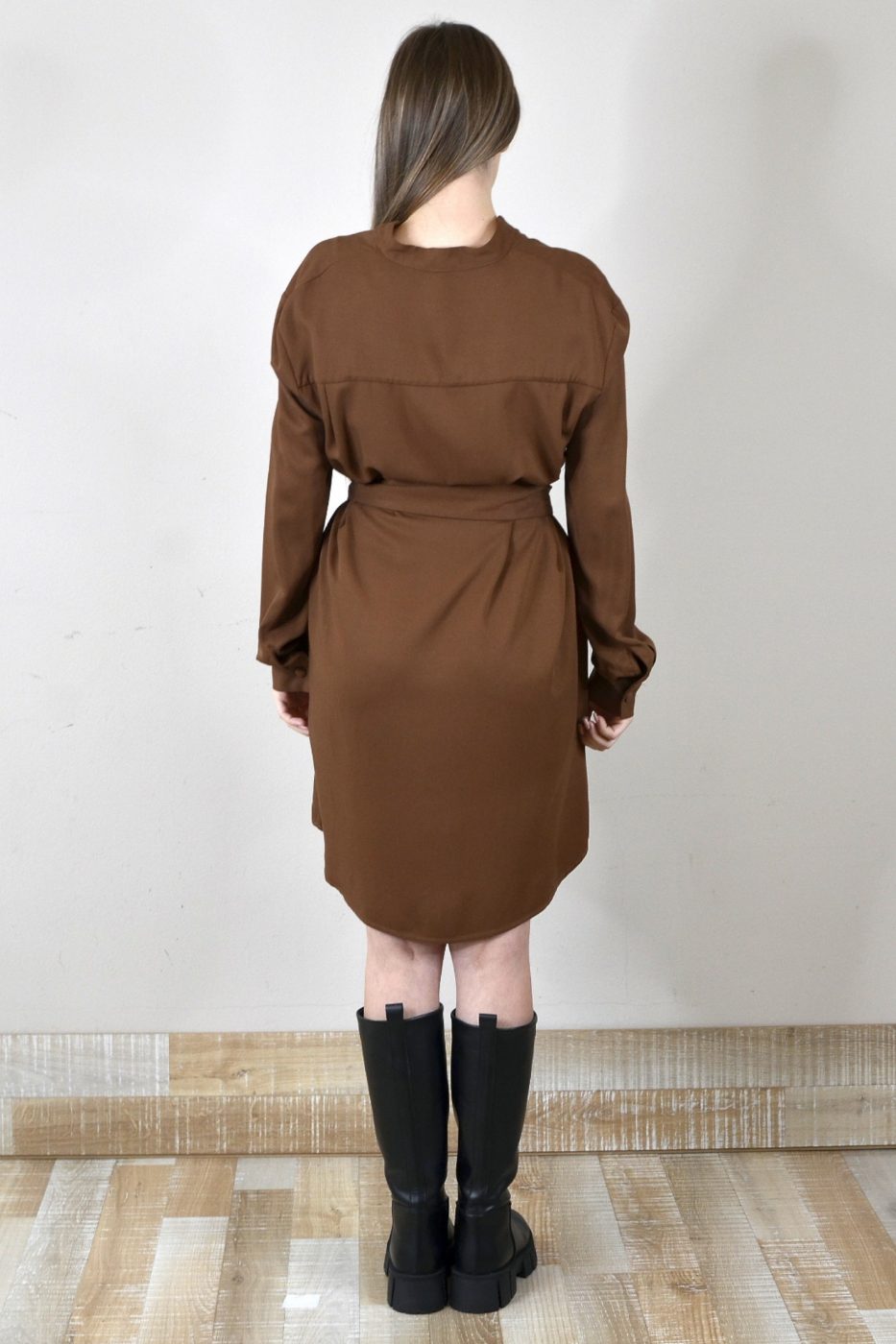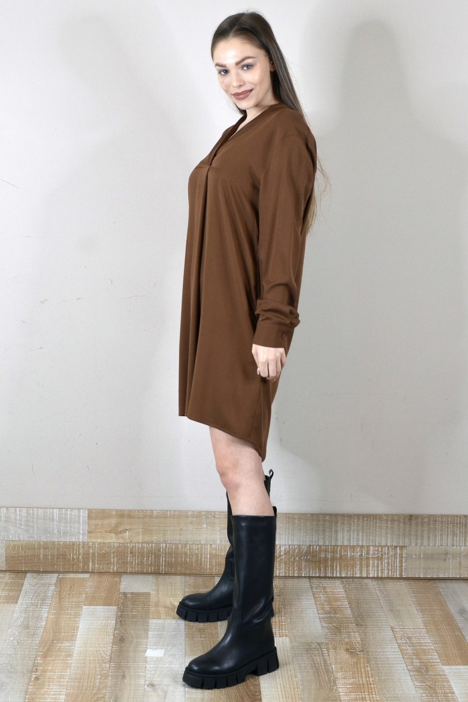 Tieto krásne šaty proste nesmú chýbať vo vašom šatníku. Dámske hnedé šaty s dlhým rukávom, ktoré môžete nosiť s opaskom aj bez opasku. Moderné šaty s výstrihom, ktoré sa hodia do práce, školy, na rande, firemné večierky či na prechádzky do mesta. Odporúčame zladiť s našimi koženými topánkami a koženými kabelkami.