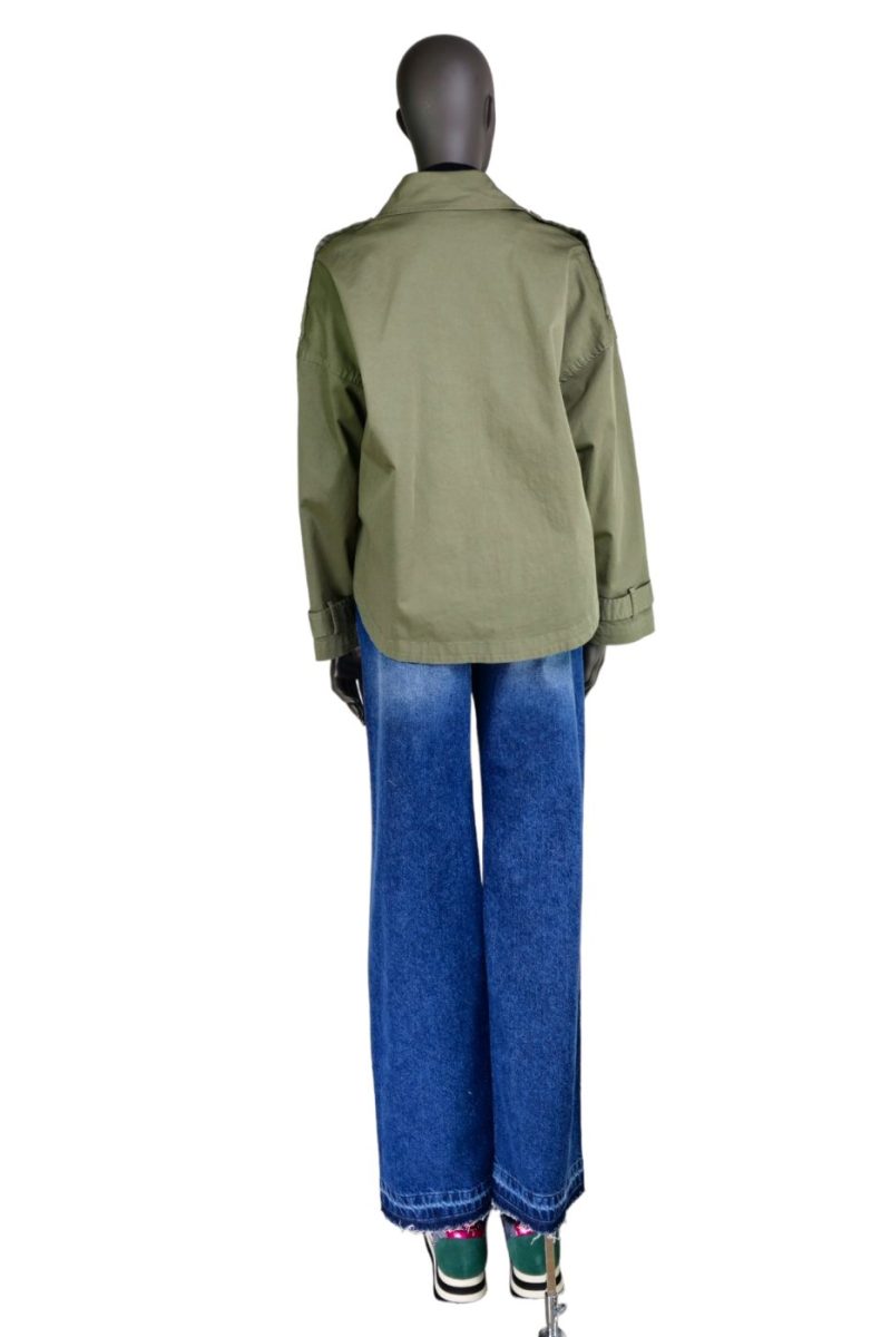 Dámsky krátky trenčkot voľnejšieho strihu VICOLO khaki zelený
