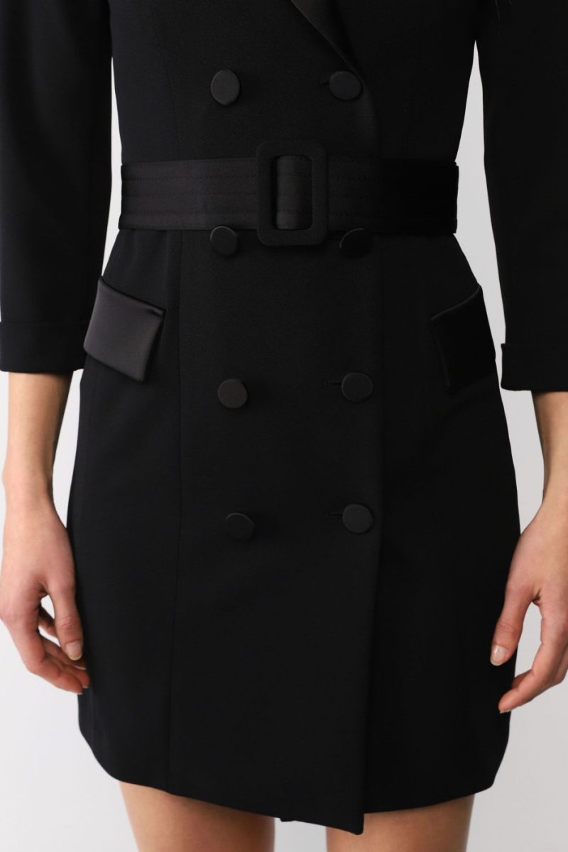Dvojradové mini sakové šaty IMPERIAL s opaskom čierne