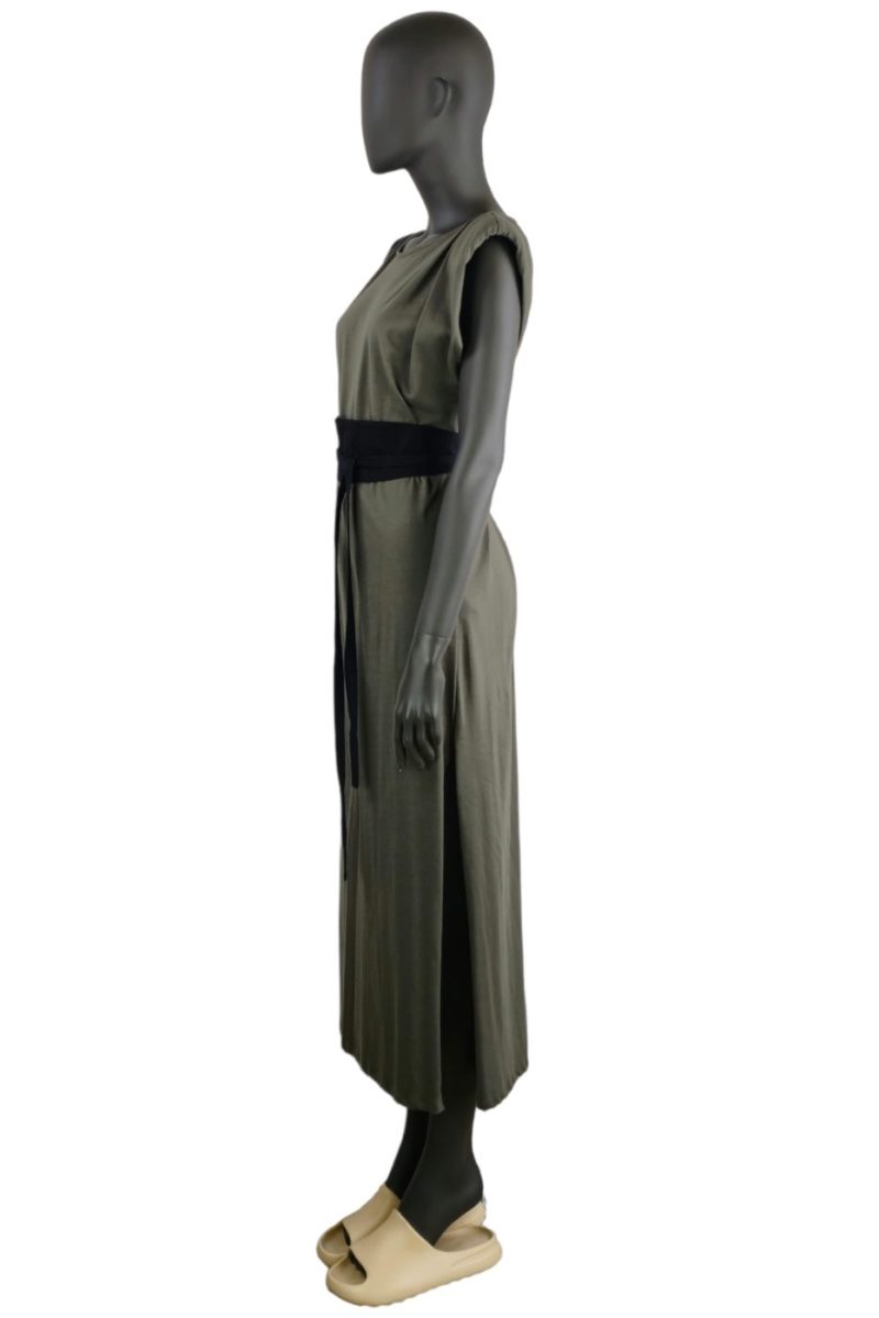 Maxi úpletové šaty s opaskom VICOLO khaki zelené