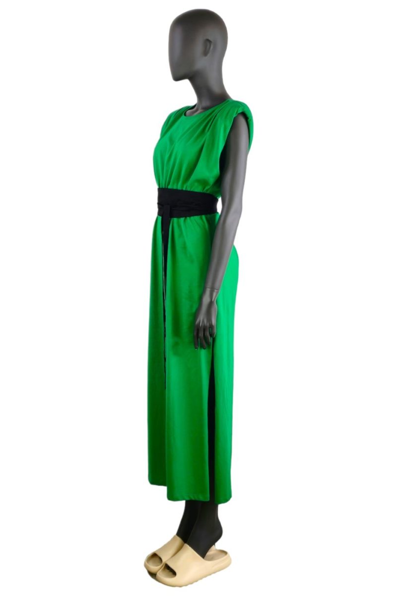 Maxi úpletové šaty s opaskom VICOLO trávovo zelené