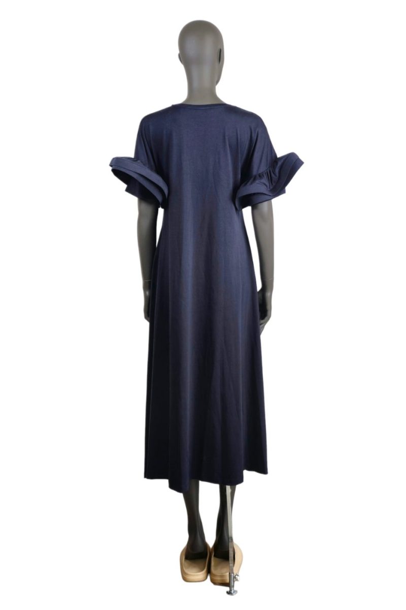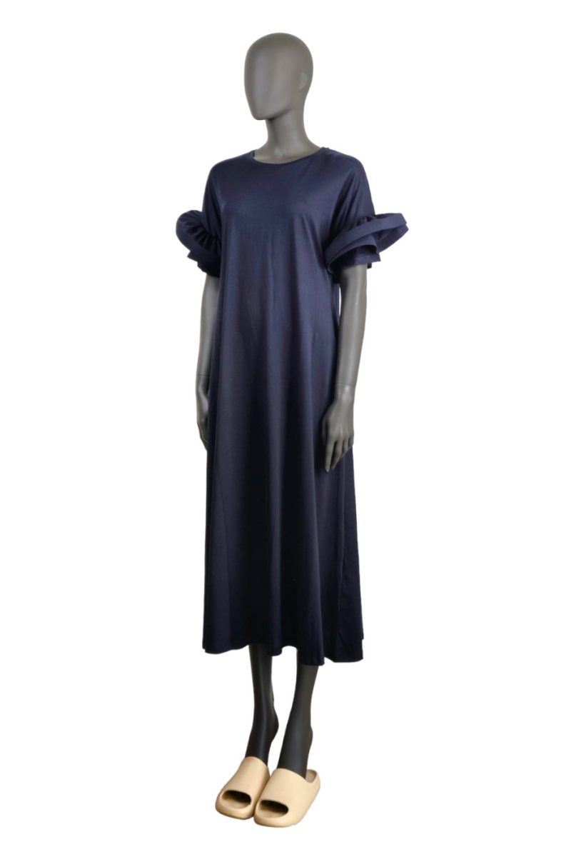 Maxi úpletové šaty s volánovými rukávmi VICOLO tmavomodré