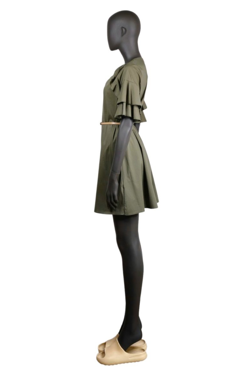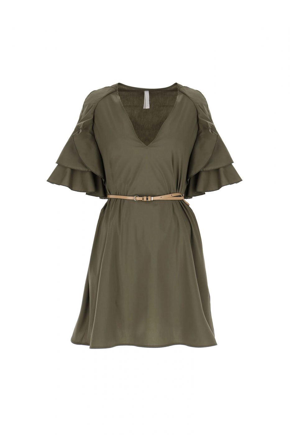 Mini letné šaty IMPERIAL s opaskom khaki zelené