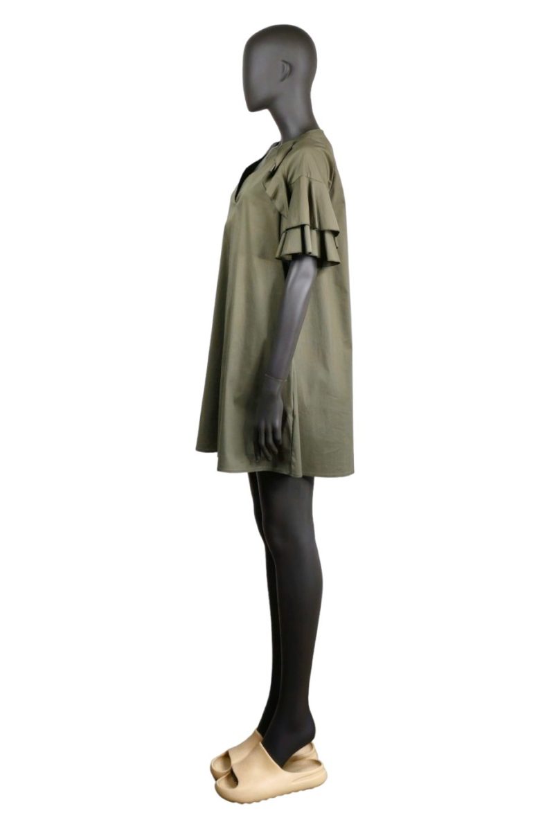 Tieto veľmi praktické, moderné šaty si môžete obliecť kedykoľvek a kamkoľvek, viac než spoľahlivo splnia svoju úlohu a budete sa v nich cítiť dobre. Dámske khaki zelené šaty s vreckami a opaskom na leto sú skvelá voľba na večeru, do reštaurácie, na pracovné stretnutie alebo len tak na prechádzku do mesta.