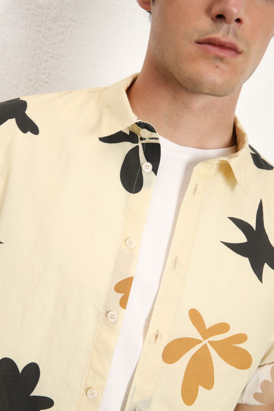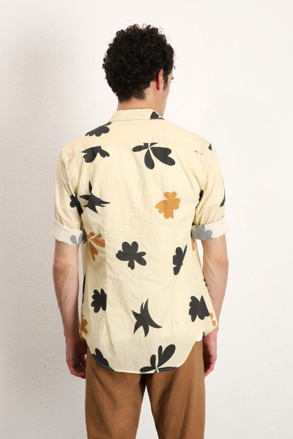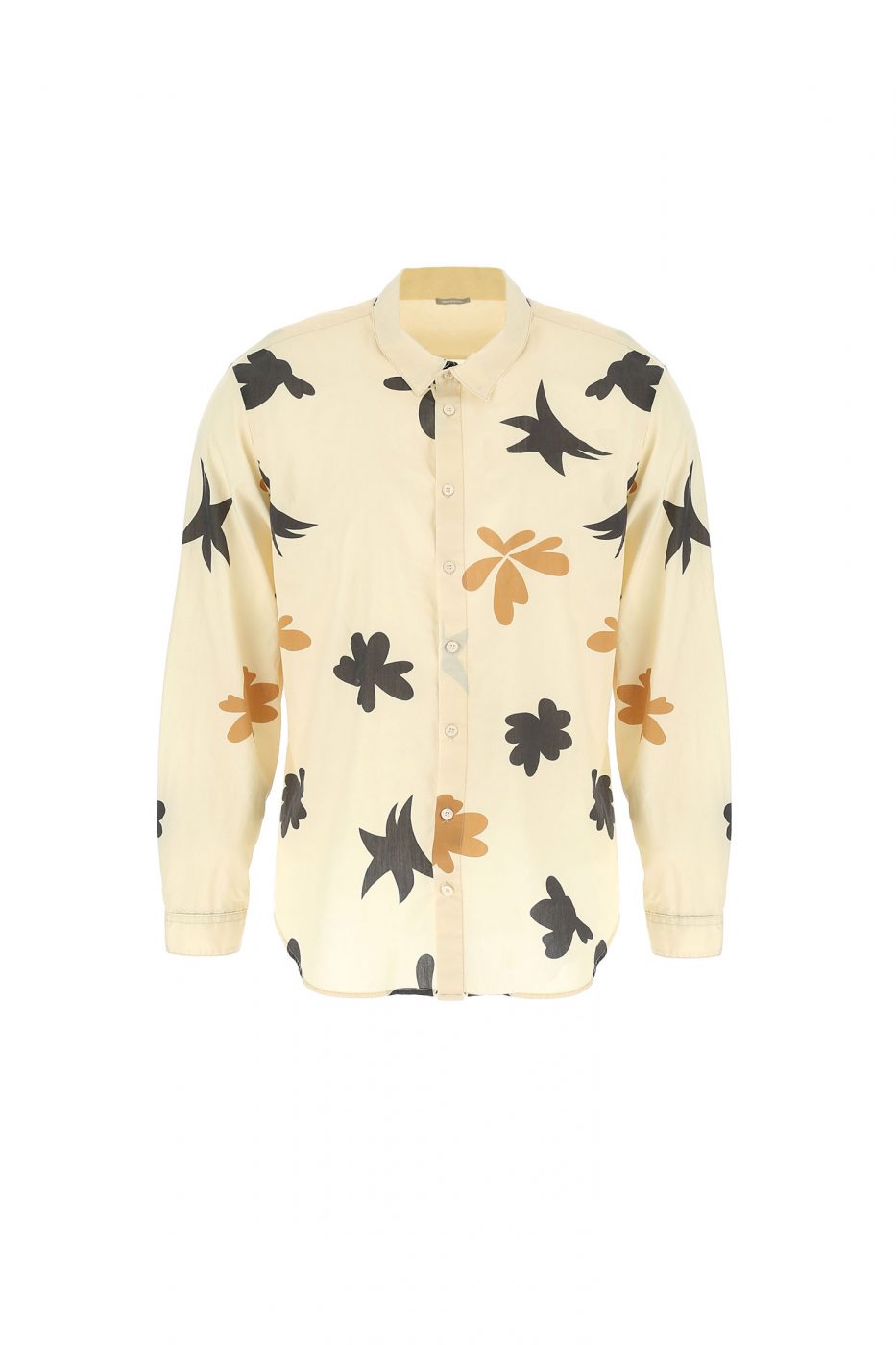 Táto košeľa z čistej bavlny má klasický golier, dlhé rukávy s manžetou a abstraktnú potlač. Je užšieho strihu.