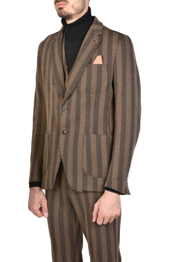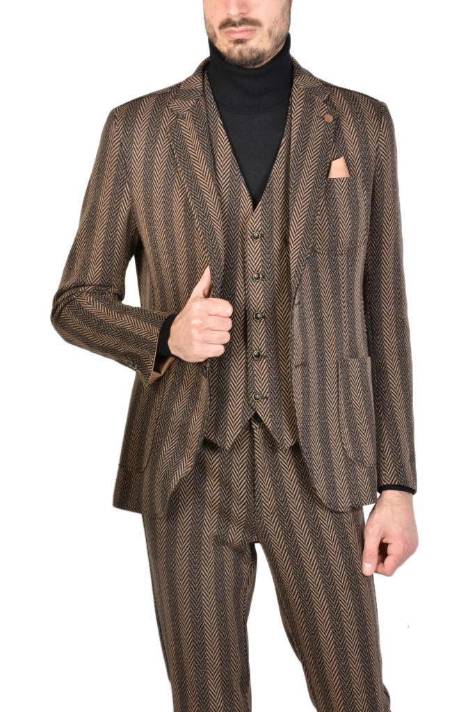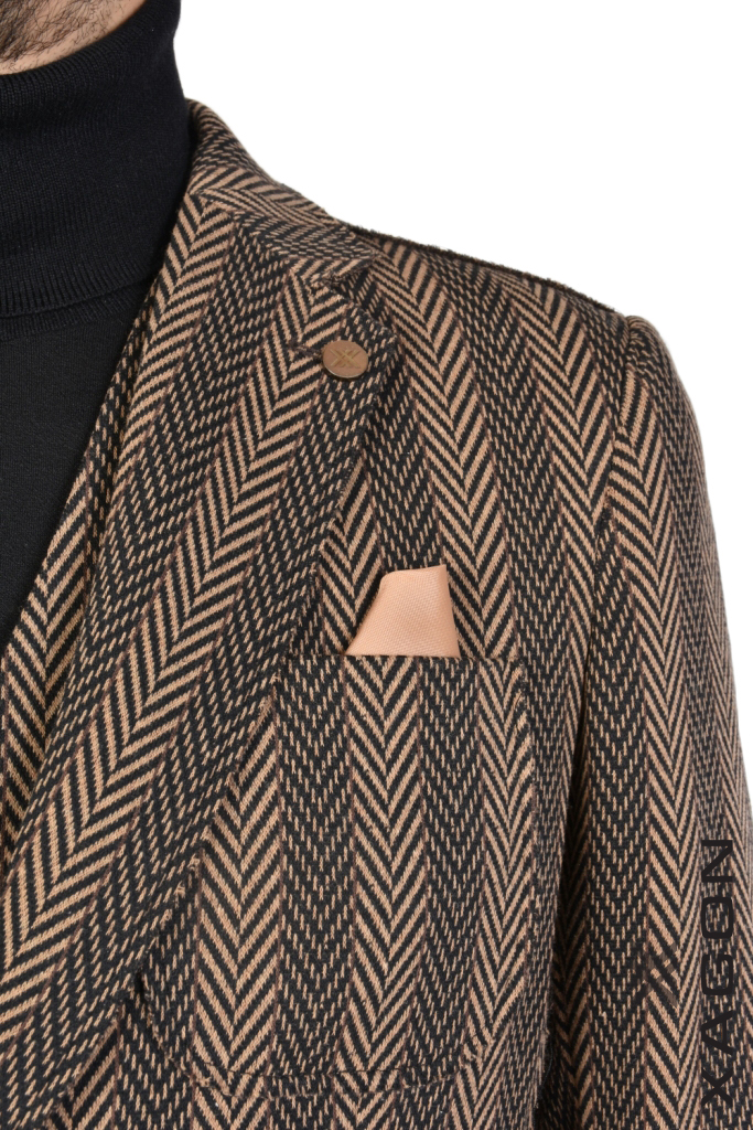 Pánske elastické sako značky Xagon man čierne s hnedým vzorom