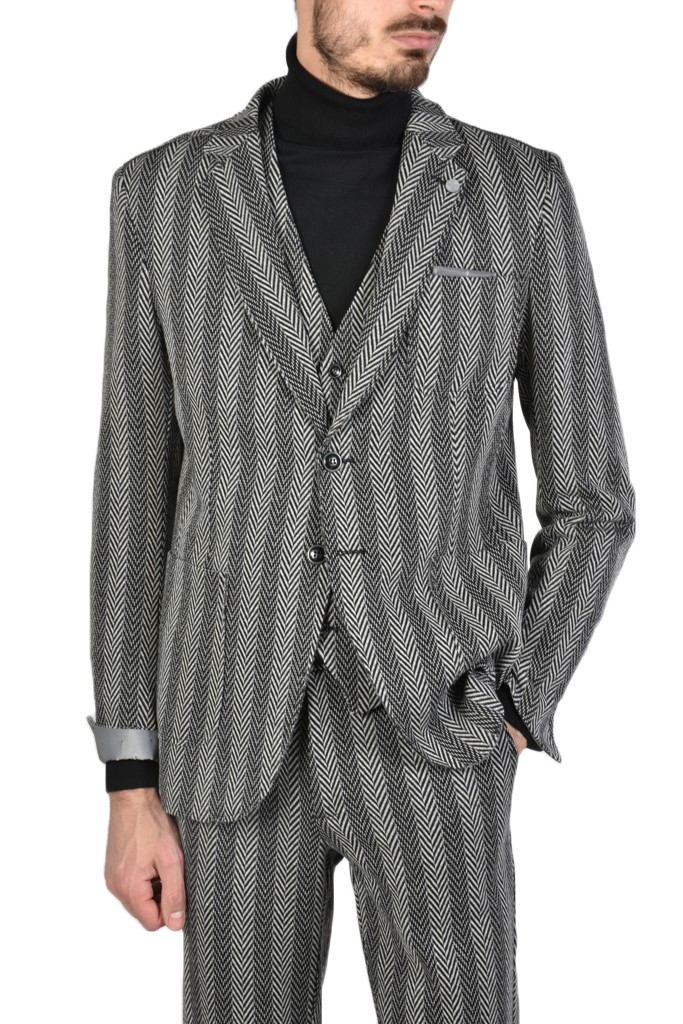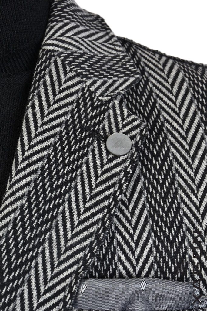 Pánske elastické sako značky Xagon man čierne so sivým vzorom
