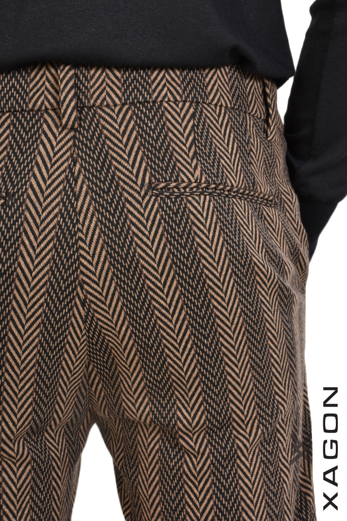 Pánske nohavice značky Xagon man čierne s hnedým vzorom