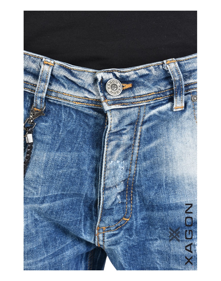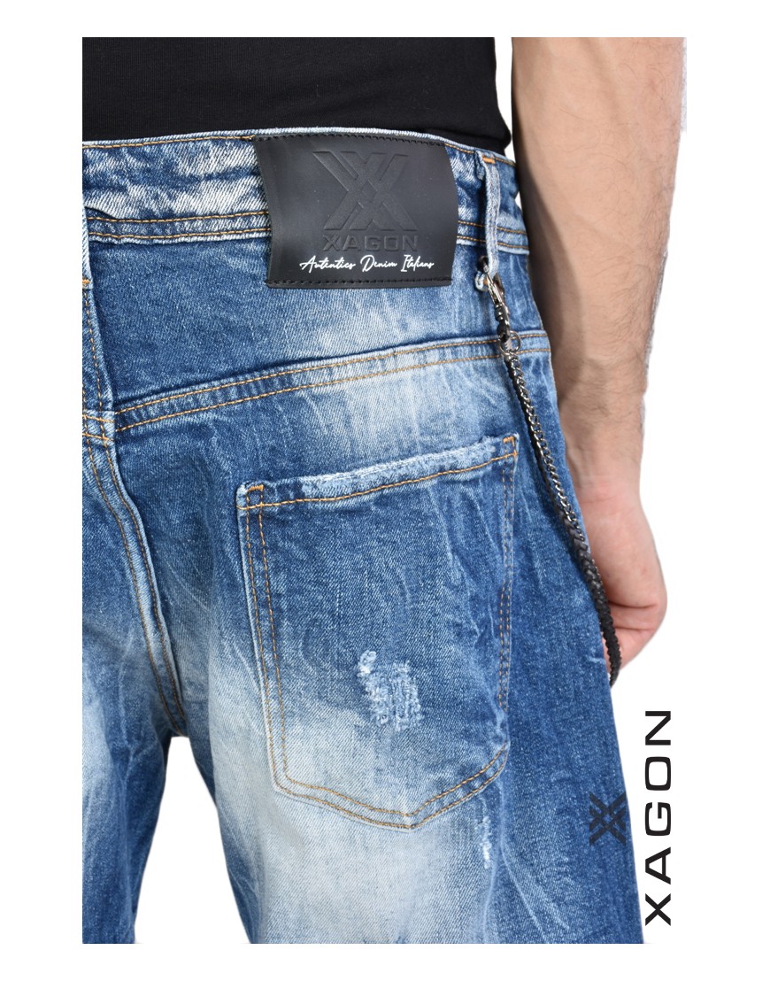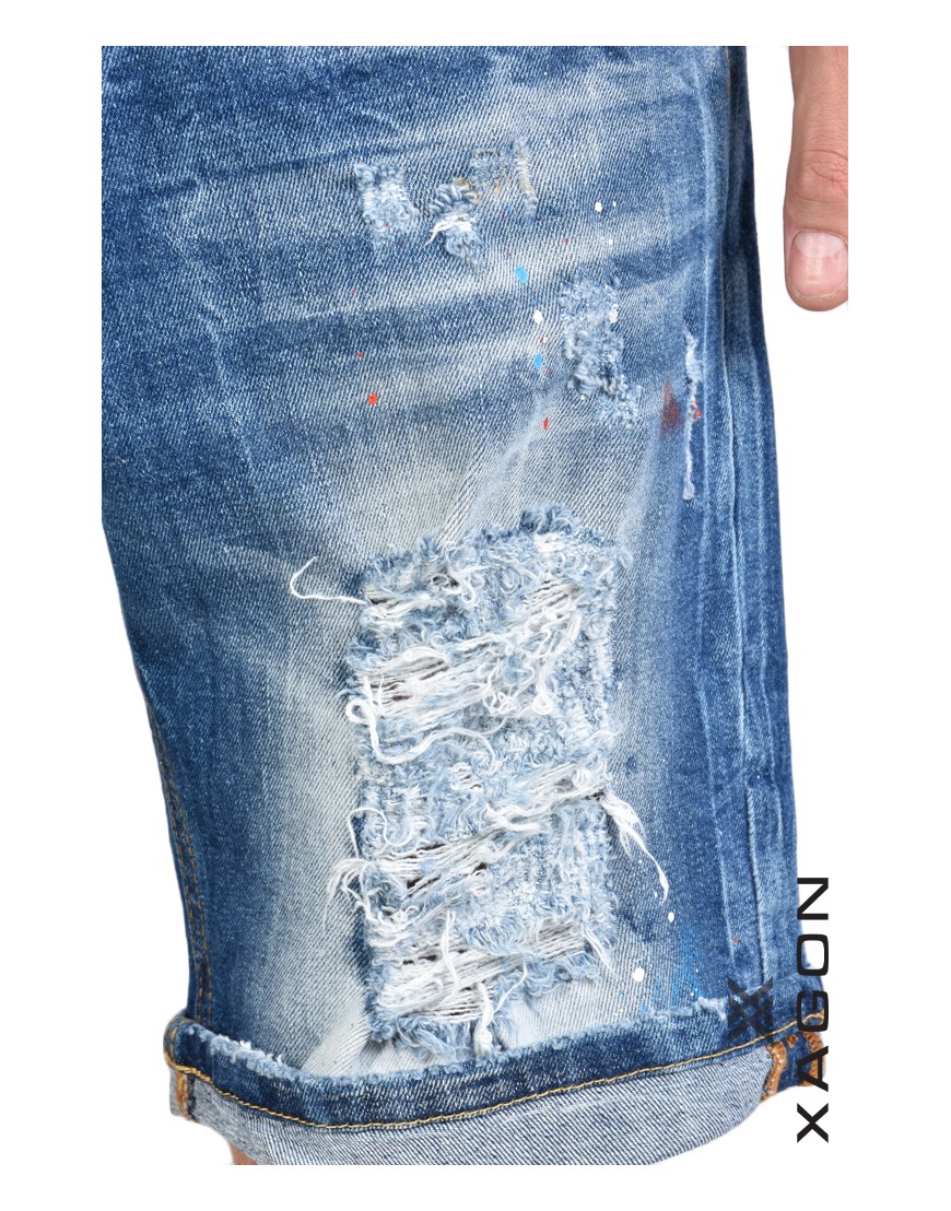 Pánske roztrhané rifľové kraťasy XAGON MAN modré