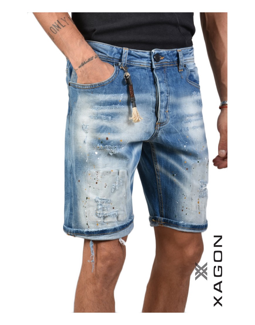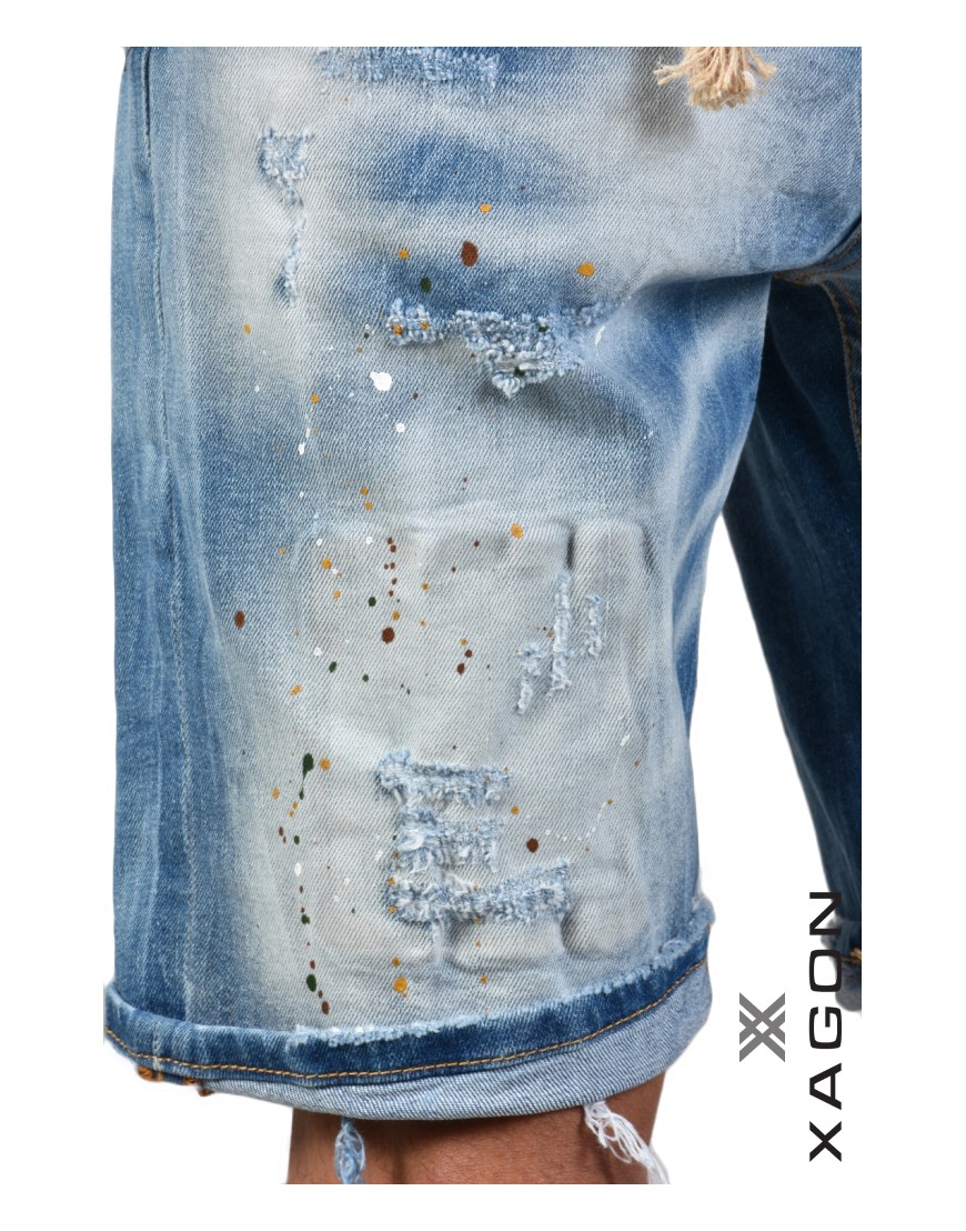 Pánske roztrhané rifľové kraťasy značky XAGON MAN svetlo modré