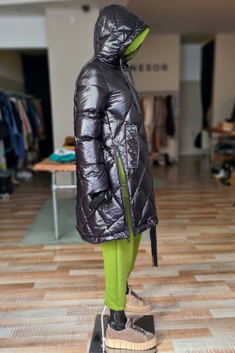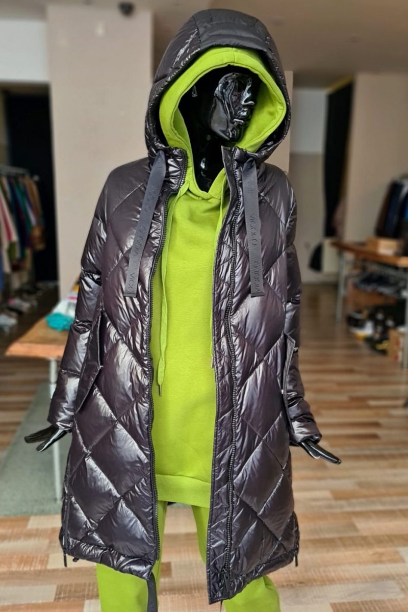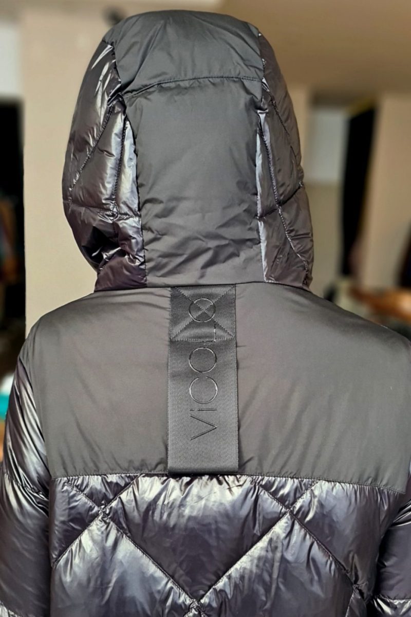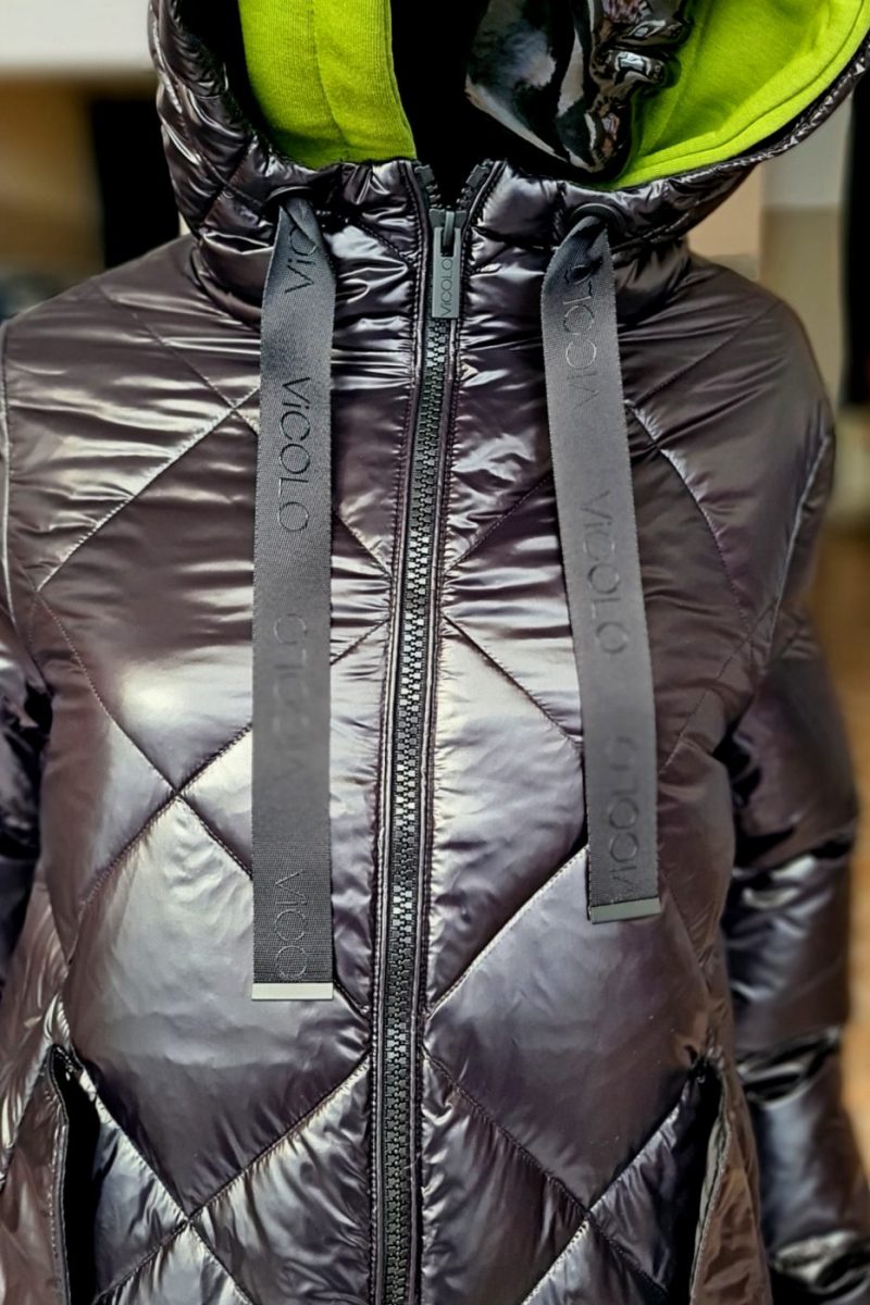 Páperová zimná bunda s kapucňou VICOLO čierna lesklá