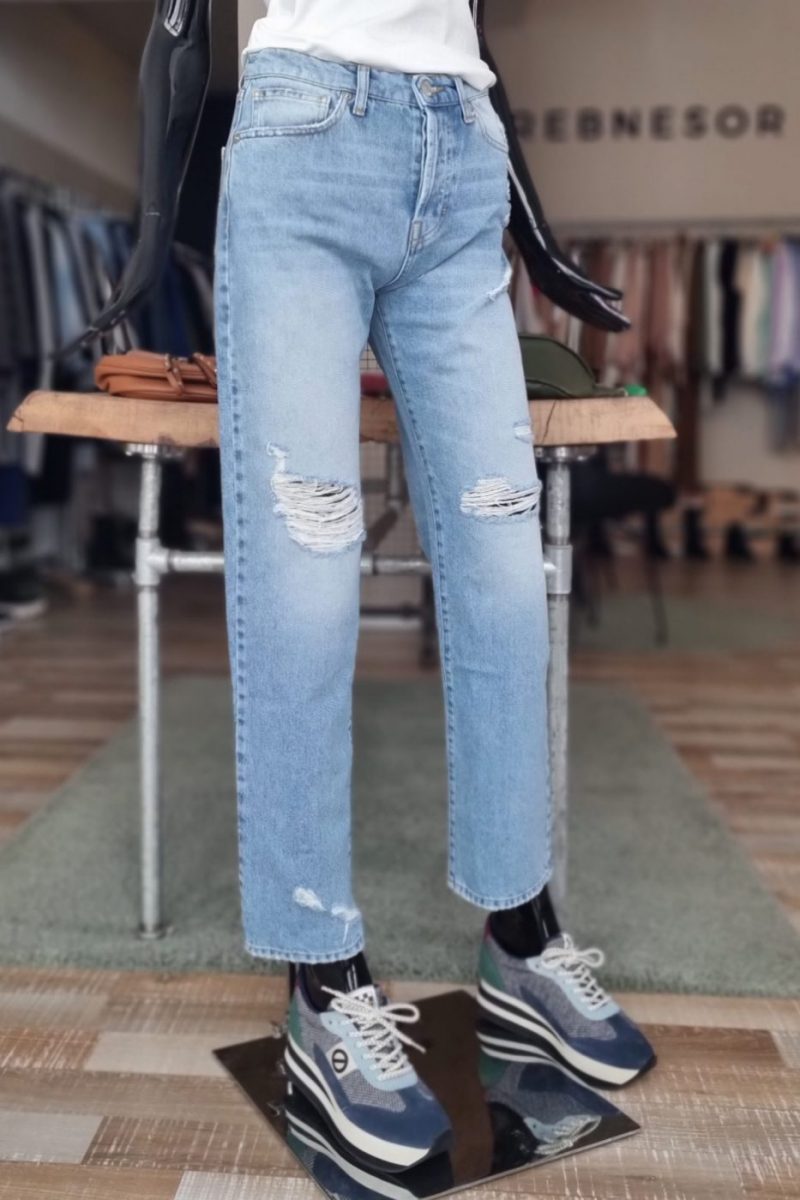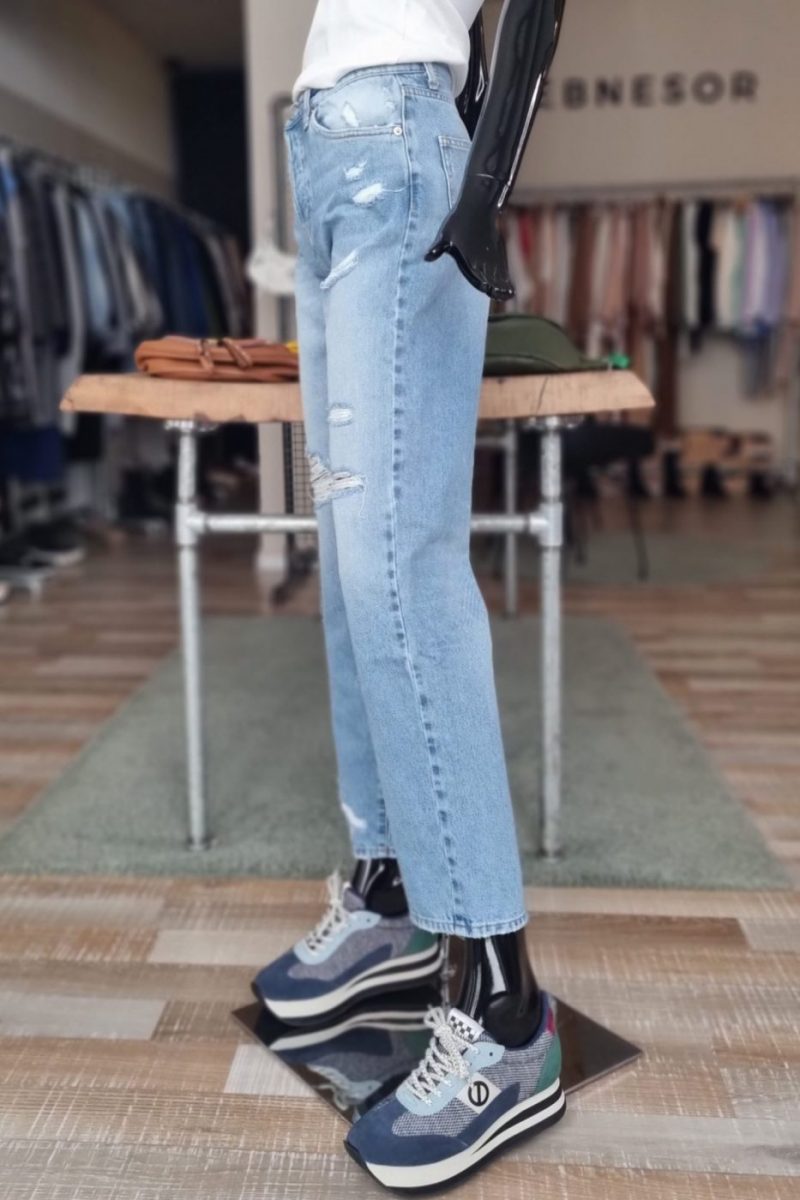 Široké roztrhané rifle VICOLO svetlomodré