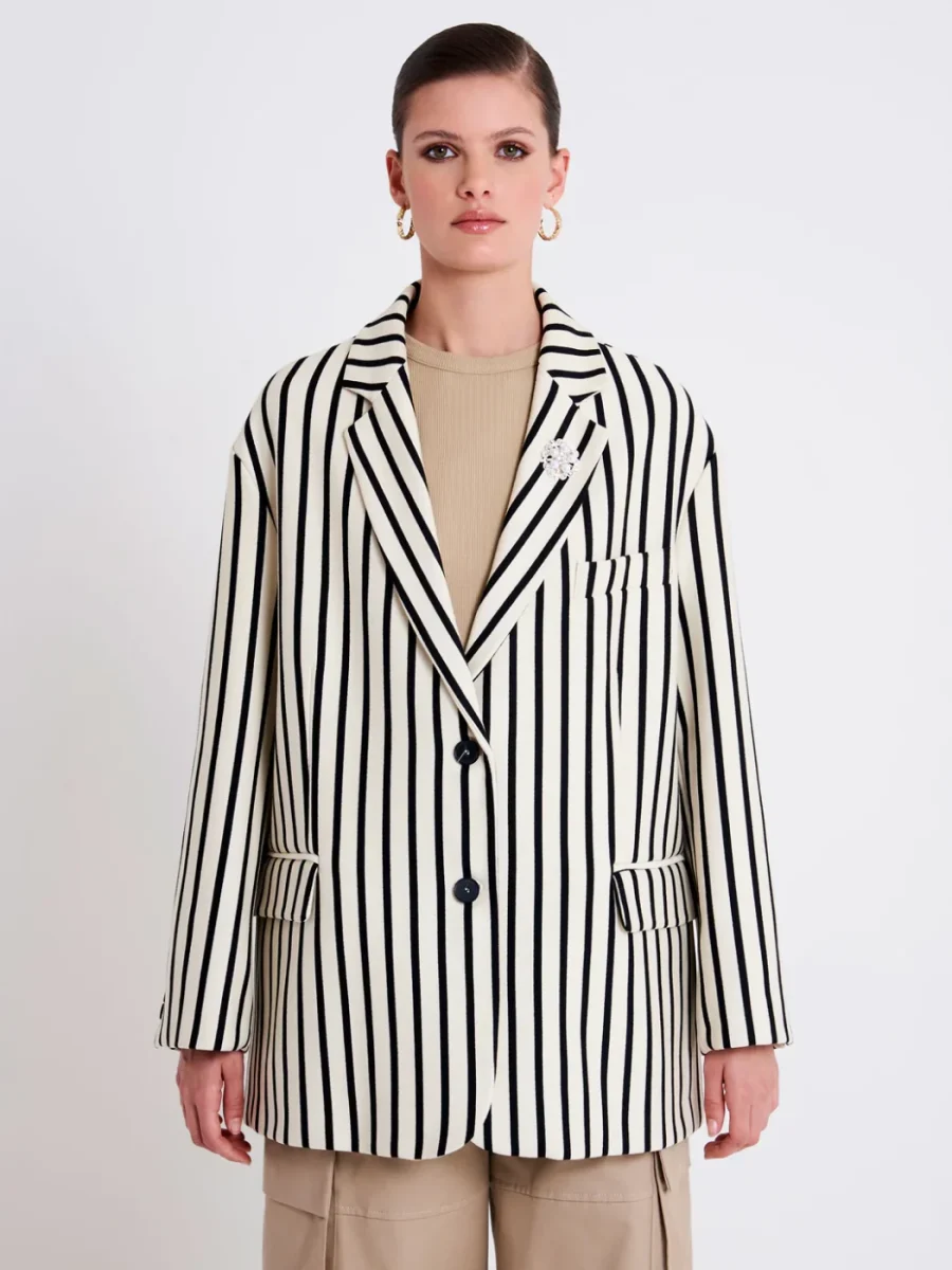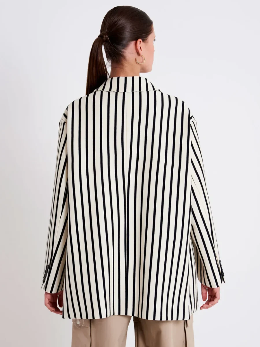 Teplákové pruhované oversize sako VICOLO béžové s čiernym