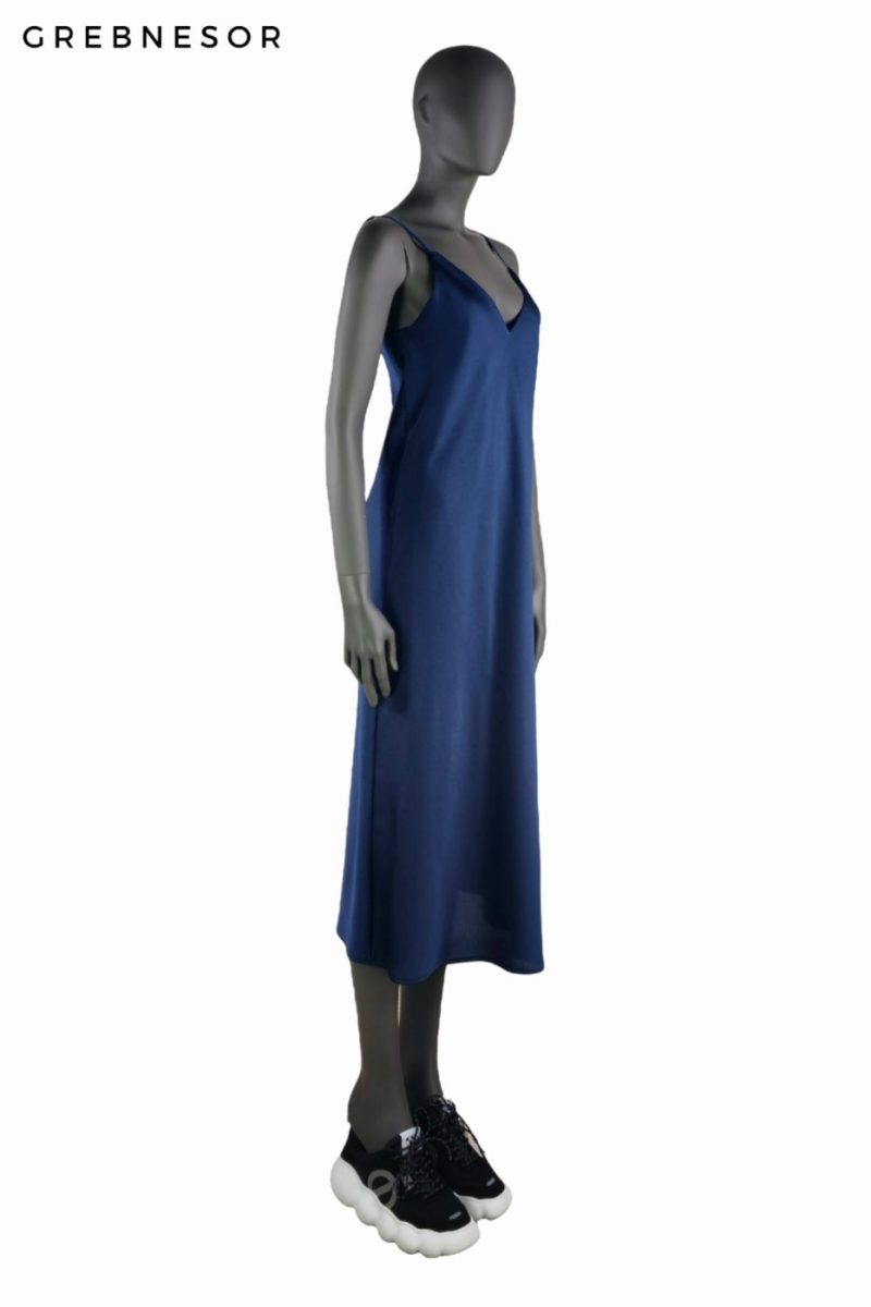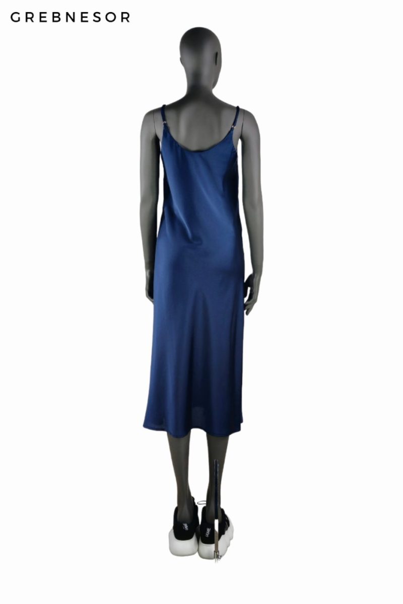 Šaty v ktorých určite vyniknete. Saténové šaty tmavomodrej farby ideálne do školy, do práce, či na kávičku s kamoškami do mesta. Odporúčame zladiť s našimi koženými topánkami a koženými kabelkami.