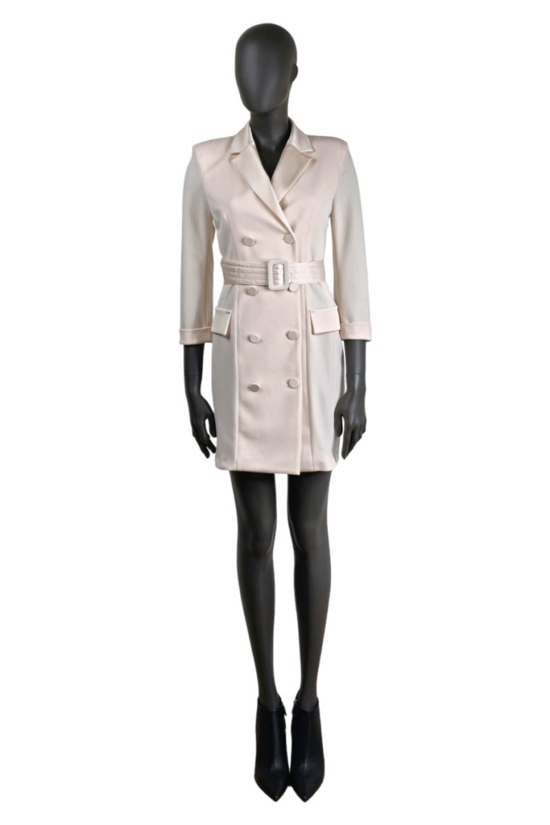 Dvojradové mini sakové šaty IMPERIAL s opaskom smotanové