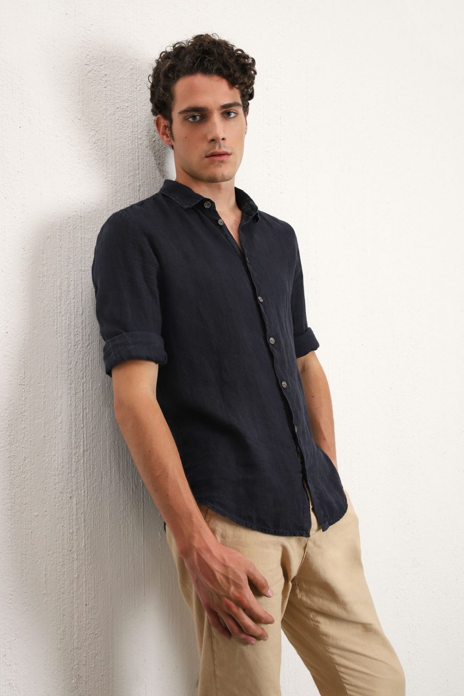 Pánska ľanová košeľa s dlhým rukávom IMPERIAL tmavomodrá