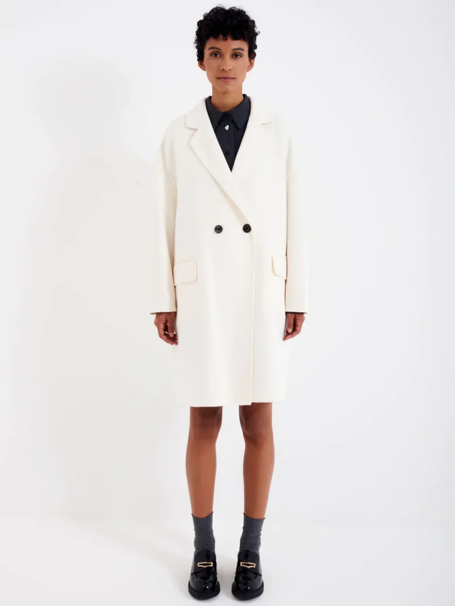 Ručne vyrobený kabát z vlnenej zmesi VICOLO biely