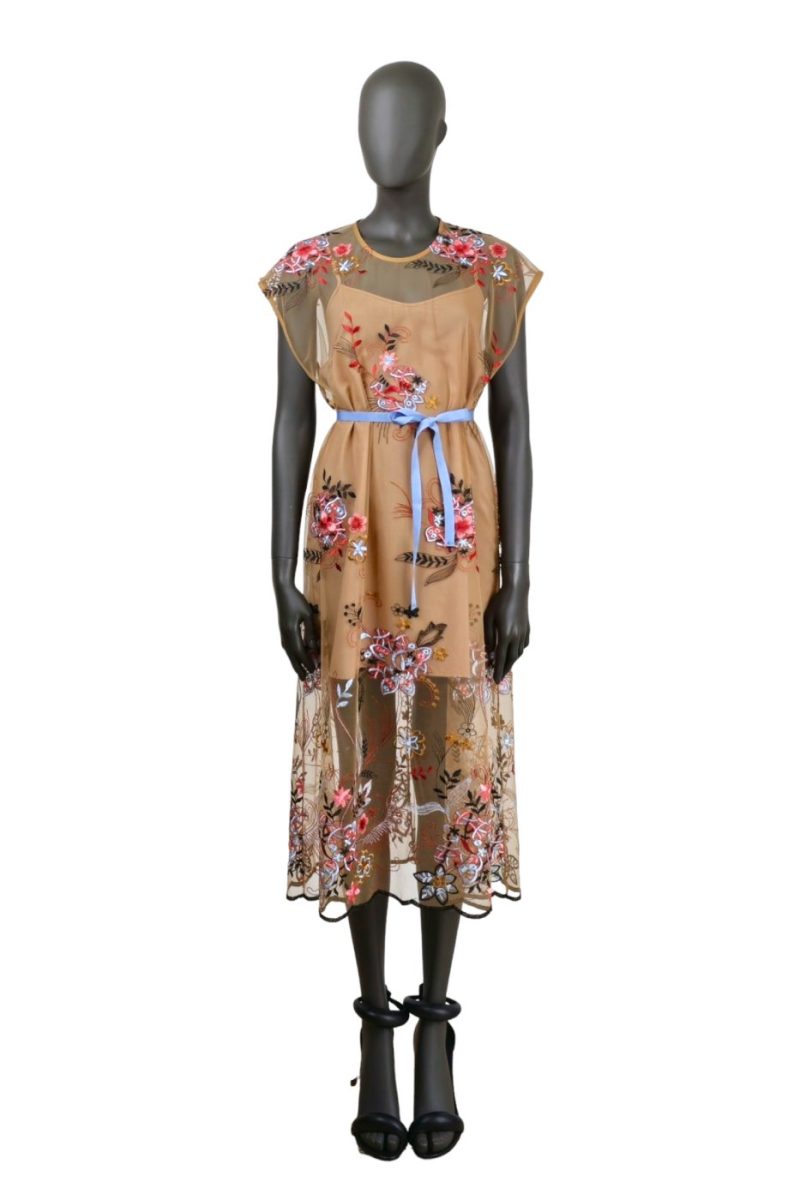 Dámske midi šaty VICOLO z vyšívaného tylu hnedé