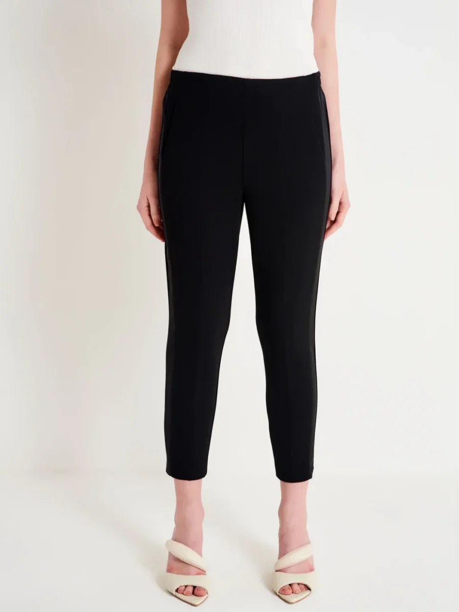 Dámske osminkové slim nohavice so saténovými detailmi VICOLO čierne