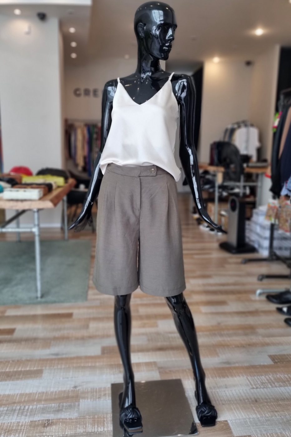 Dámske široké ľanové kraťasy s vysokým pásom VICOLO khaki zelené