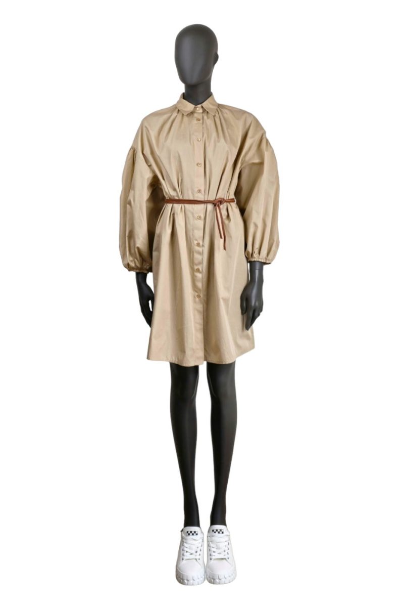 Košeľové šaty VICOLO s balónovými rukávmi béžové