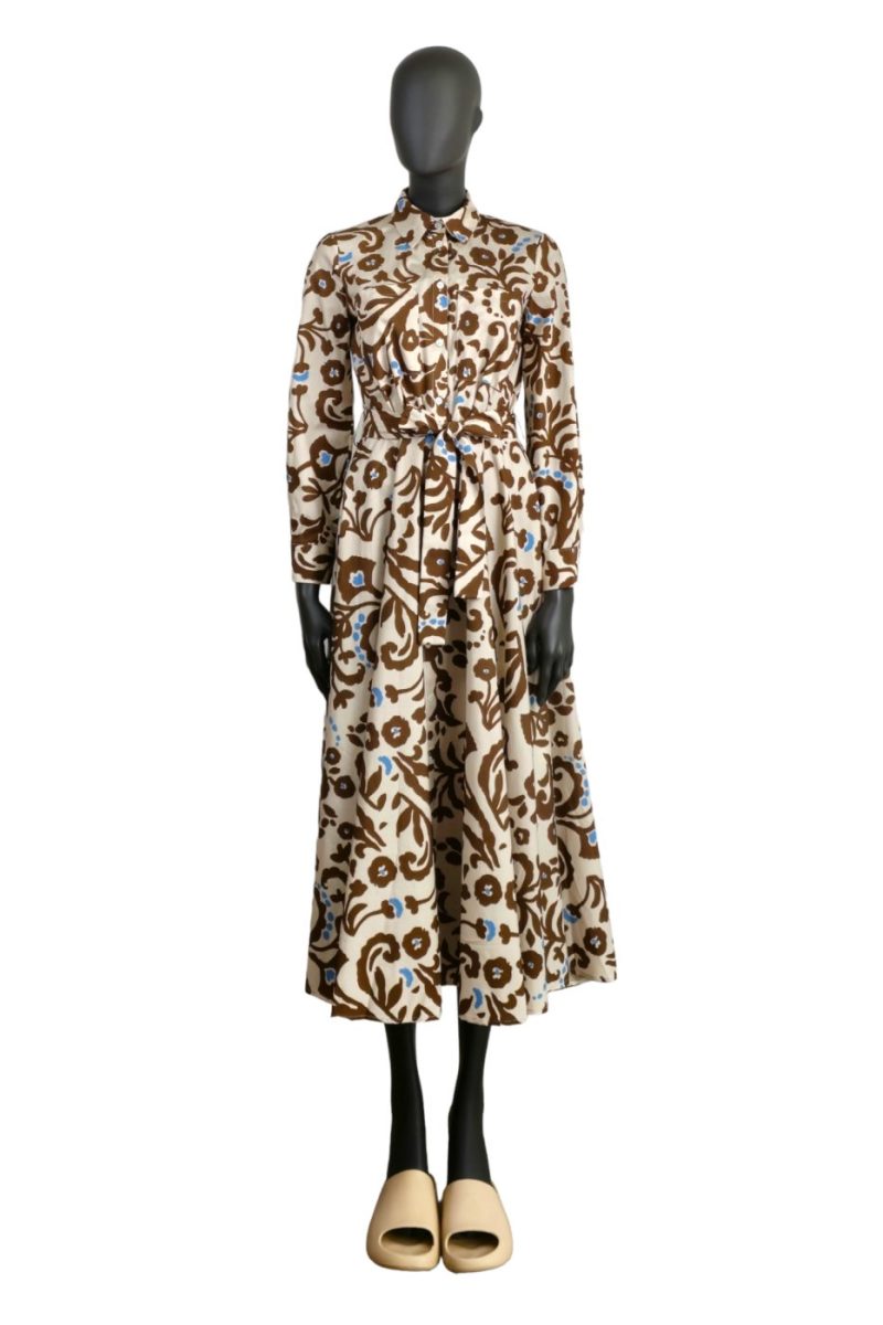 Košeľové maxi šaty VICOLO béžové s potlačou