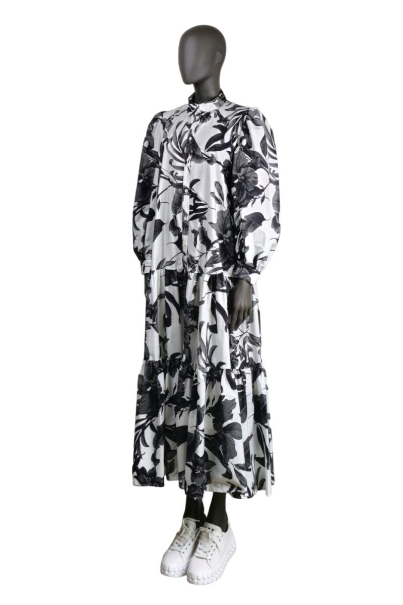 Košeľové maxi šaty VICOLO čierne s kvetinovou potlačou