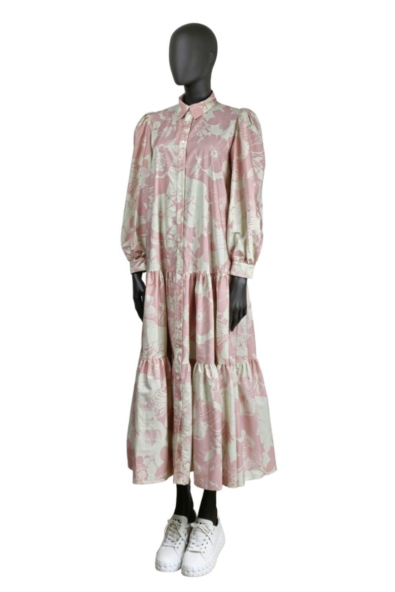 Košeľové maxi šaty VICOLO púdrové s kvetinovou potlačou